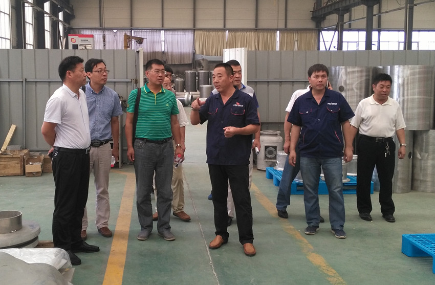 ? ? 7月29日上午,河南科技大學科技處朱文學處長、化工學院馬軍營院長、機電學院魏冰陽副院長、農業工程學院耿令新副院長、科技處張聚偉副處長一行五人,在縣領導侯蘭勝副縣長、工信委張俢忠主任陪同下,來我公司參觀考察。