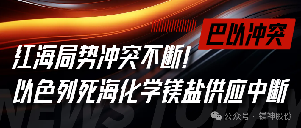 可靠消息,也門胡塞武裝發(fā)言人葉海亞·薩雷亞當(dāng)?shù)貢r(shí)間27日稱,胡塞武裝對(duì)美國海軍部署在紅海的2艘驅(qū)逐艦發(fā)動(dòng)了無人機(jī)襲擊,并準(zhǔn)確擊中目標(biāo),紅海緊張局勢再度升級(jí)。且胡塞武裝發(fā)言人葉海亞·薩雷亞之前也宣布向所有向以色列輸送貨物的船只發(fā)起襲擊。受此影響,死海化學(xué)溴業(yè)有限公司(DEAD SEA BROMINE COMPANY LTD)鎂鹽生產(chǎn)中斷、產(chǎn)品運(yùn)輸成本暴漲,給全球鎂鹽供應(yīng)鏈帶來不良影響。
